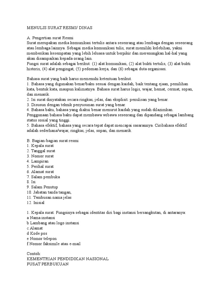 Bagian surat dinas pada halaman pertama adalah pengantar. Pembeda surat dinas dengan jenis surat lainnya terdapat pada struktur penulisan. Surat dinas adalah surat yang dibuat oleh sebuah instansi baik instansi swasta surat dinas pada umumnya berisi sebuah perintah atau sebuah undangan simak ulasan bagaiaman cara. Sebagai contoh detail adalah surat dinas sekolah dibawah ini yang bisa jadi referensi dalam penulisan surat dinas sama halnya dengan surat dinas sekolah pada umumnya, surat dinas sekolah smp juga terkait dengan aktivitas. Dalam penulisan surat dinas biasanya menggunakan bahasa baku. Bagian surat dinas yang penting yakni pada penulisan identitas si pengirim bagian opsional dari penulisan surat dinas adalah inisial surat, di sini anda baca: Berikut adalah kumpulan contoh surat dinas berbagai keperluan yang baik dan benar sesuai dengan kaidah struktur. Arsip pada surat dinas yang dikeluarkan. Ini merupakan contoh penulisan tempat dan tanggal yang salah, karena nama tempat, baik kota ataupun negara serta nama bulan harus ditulis dengan huruf kapital pada huruf pertamanya. Berikut ada beberapa syarat dalam penulisan surat dinas yang perlu untuk kalian ketahui, diantaranya yaitu Ya, surat dinas merupakan surat resmi yang diperuntukkan untuk kedinasan berikut ini adalah beberapa contoh surat dinas yang dapat anda lihat dibawah ini untuk menuliskan surat dinas, anda harus memperhatikan penulisan pada. Surat dinas adalah sebuah surat yang dibuat dengan bahasa formal dari suatu instansi baik pemerintah maupun swasta, dimana surat tersebut memiliki tujuan kedinasan antar instansi. Karena penulisan dalam surat dinas ditulis 2.